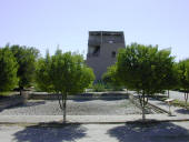 A couple of miles further along the road in the midst of orchards that once belonged to rich 'Begs' (rich people) lies the unusual Chadra Hauli. Rising above the surrounding trees, the Chadra Hauli stands tall with its four storied aywans facing north to catch the merest hint of breeze during Khiva's hottest months. The whole structure is reminiscent of the watch tower in the Kunya Ark but its height was not primarily for spying out potential bandits. Rather the Chadra Hauli was built by a rich merchant who wanted a peaceful and airy residence. The enclosed walls of the Ichan Kala became unbearable in the summer heat and those with the means would escape to a holiday home in the country.