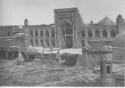 Take a look at this black and white photograph of a crowded bazaar scene which demonstrates some of the intriguing 'inconsistencies' of Khiva's former dress code. Notice, for example, the solitary unveiled woman who probably came from Karakalpakstan or Kazakhstan where covered faces were never obligatory. Notice too, the old man complete with the mandator furry hat walking around in bare feet.