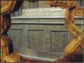 The entire interior is covered in blue and green majolica tiling with distinctive motifs complemented by rich gold borders. The remains of Mohammed Rakhim Khan I (1776-1826) lie directly in front of the door while the left-hand-side is reserved for the tombs of Abdul Gazi Khan (1603-1663) and Anusha Khan (died1681). A mullah sits in front of these graves inviting pilgrims to join him in prayer. After the 'Amin' (amen) has been invoked, the pilgrims leave money and food offerings before proceeding into a smaller chamber containing the tomb of Pakhlavan Mahmoud himself. The crypt can be seen through the portals of two elaborate wooden doors inlaid with ivory, coral and copper. Kneeling pilgrims touch these doors as they pray and then receive the blessing by washing cupped hands over their faces before returning the blessing and their hands to the doors once more.