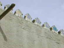 There were two gates into the palace. The main gate was for visitors, such as official guests and local citizens intending to petition the Khan. They would enter through the gate into the main corridor and from here go into the 'Ishrat Hauli' where the Khan received company or the 'Auz Hauli' (literally 'Voice Court') where he dispensed justice. This gate was also used by male relatives of the Khan's harem who were able to meet their veiled daughters or sisters under supervision only at the gate itself. The other gate was for servants and trademen and was situated on the south wall of the palace. A narrow passage runs along outside the palace which is paved with the original uneven stone slabs showing worn grooves of carriage wheels. Today both gates are closed and access to the palace is through a specially built entrance to the harem.