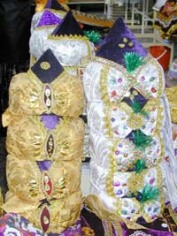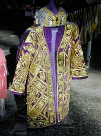 On the day of the circumcision the boy is given a turban-like hat to wear and a decorated robe. He then makes a tour of the Said Allaudin and Pakhlavan Mahmoud Mausoleums with his parents, who offer the resident Mullahs money and bread and ask for blessings. They then return home and await the chimanchi who arrives with the chiman and a drummer. Together they entertain the boy or boys, singing funny songs and making jokes and giving the chiman to the boy. This will be hung up outside the house for a month as a sign that a circumcision has just taken place. Traditionally the chimanchi is paid with a sheep, but these days a monetary payment is more common. At around lunch time the barber arrives and a bed is made with the new mattress, pillow and sheets in one of the rooms. Bread is placed under the pillow for luck and sweets are thrown over the bed, which are then eaten by the children of the house. The women leave the room and the barber, father of the son, his brothers and close friends, bring the boy into the room and remove his trousers. Up until this point, the atmosphere is usually one of fun and celebration with the boy or boys about to be circumcised either unaware or distracted from what is about to take place. However, at this point the boy will often become scared and start kicking. Usually the father is as upset as his son, so his friends take over, holding the boys arms and legs tight and placing him onto the newly made mattress on the floor. The barber then cleans the penis, rolling the foreskin back as far as it will go. The foreskin is then pulled up and stretched onto a small wooden stick. The barber then takes out a piece of bamboo that has been cut in half length ways and has a slit down the middle. This is slid across the foreskin, shielding the penis but exposing the stretched foreskin still held taught between the barber’s thumb and stick. With his free hand the barber then takes a sharp knife and with a guillotine motion slices accross the bamboo, cutting off the foreskin. The remaining foreskin skin is quickly rolled back and daubed with cotton wool soaked in antiseptic. At this point the father looks dazed, the boy cries and screams and the various friends and relatives crowd around waving money and toys in the boys face, congratulating him on becoming a real boy. Meanwhile, the women of the house have been sitting in another room with the mother of the boy who keeps her finger immersed in oil in order to assuage some of her son’s pain. The barber then enters this room and congratulates the mother on a successful circumcision. It is the mother and not the father who must pay the barber and in return she is given her son’s foreskin. She carefully wraps this up and later sews it into the new mattress she has made for her son. This will be the mattress that her son will spend his wedding night on, following the old superstition that a man who is not near his foreskin during love making will not be able to have children. The boy or boys who have been circumcised have pillows built up around each side of their mattresses and then a quilt placed over, in order not to touch the boy’s body. They then rest for a few hours and when they want to get up they are given baggy new, white pajamas to wear. Newly circumcised boys are not to leave the house for three days. On the evening of the third day or within that week, those who can afford it hold a large party. This is similar to a wedding party, with lots of guests invited, seated outside with musicians and a dancer and the ubiquitous mountains of plov. The newly circumcised boy or boys wear their special hats and robes as well as the baggy pajamas. They proudly limp around collecting money, sweets and compliments from the various guests. The memory of the snip itself already a hazy memory.
