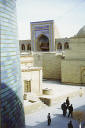 Take a look at this black and white photograph of a crowded bazaar scene which demonstrates some of the intriguing 'inconsistencies' of Khiva's former dress code. Notice, for example, the solitary unveiled woman who probably came from Karakalpakstan or Kazakhstan where covered faces were never obligatory. Notice too, the old man complete with the mandator furry hat walking around in bare feet.