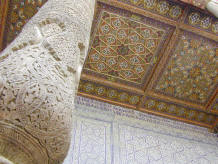 There were two gates into the palace. The main gate was for visitors, such as official guests and local citizens intending to petition the Khan. They would enter through the gate into the main corridor and from here go into the 'Ishrat Hauli' where the Khan received company or the 'Auz Hauli' (literally 'Voice Court') where he dispensed justice. This gate was also used by male relatives of the Khan's harem who were able to meet their veiled daughters or sisters under supervision only at the gate itself. The other gate was for servants and trademen and was situated on the south wall of the palace. A narrow passage runs along outside the palace which is paved with the original uneven stone slabs showing worn grooves of carriage wheels. Today both gates are closed and access to the palace is through a specially built entrance to the harem.
