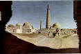 By the 1960's the gate had all but fallen down and it has since undergone a roof replacement. There are twin stair wells on either side which provide access to the roof with good views of the desert and the southern half of the Ichan Kala. The city walls were the main burial place for those who died within them, although burial space was extremely cramped. There are numerous tombs, including those of holy men marked by tattered flags, and parts of the unrestored walls can also be seen.