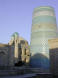 One of the most distinctive landmarks of Khiva, the squat unfinished Kalta Minor was planned to be the tallest minaret in the Muslim East. Construction began in 1851 by Mohammed Amin Khan who wanted to have an impressive minaret as the finishing touch for his lavish new madrassah. Unfortunately it was never completed but the sheer girth of its base suggests that it would have boasted truly mammoth proportions. Today it stands at a mere 26 metres although for almost a century it measured only 23 metres in height until restoration in the 1970's uncovered a further 3 metres buried in accumulated sand and dirt. Also discovered were the row of cells (now used as shop stalls) leading to the Ota Darvasa.