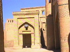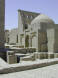 The 'Uch Avliyo' ('Three Saints') Mausoleum contains the remains of three local heros as well as those of several holy men and dervishes (wandering pilgrims) whose graves are marked with flags on poles. Built in 1549, the mausoleum has recently been renovated and the original foundations, for years covered by layers of accumulated debris, have been exposed once more. An aywan stands opposite where local grannies sit and drink tea, pray for visitors and keep vigil over this holy site.