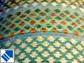 At sunset the city of Khiva gleams with a deep burnished bronze as the sun reflects off the mud brick walls. Contrasting these warm tones are the dazzling flashes of blue, green and turquoise tiling for which Khiva is famous. The Kaltor Minor and dome of the Pakhlavan Mahmoud Mausoleum shimmer with their deep green glazed bricks whilst the intricate blue and turquoise majolica designs which weave across the Khan's residences soothe the eye on even the hottest of summer days.. |